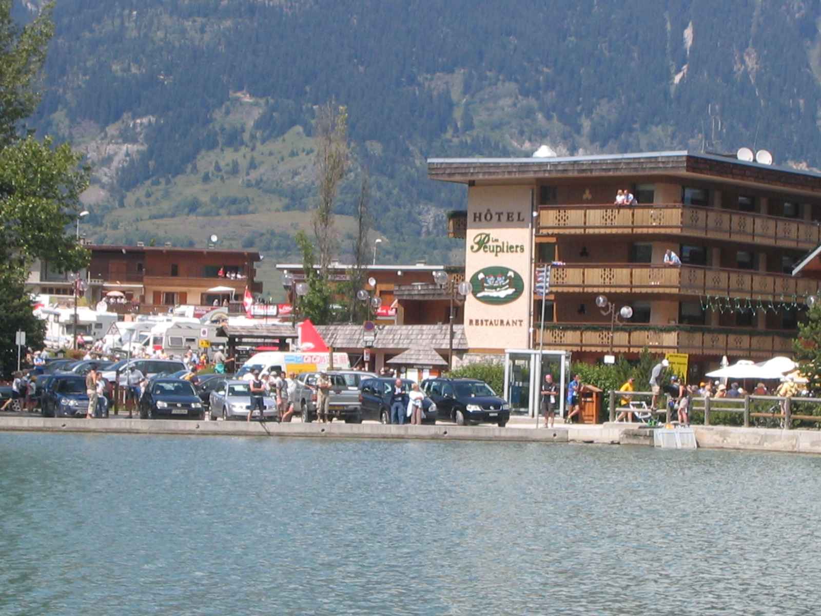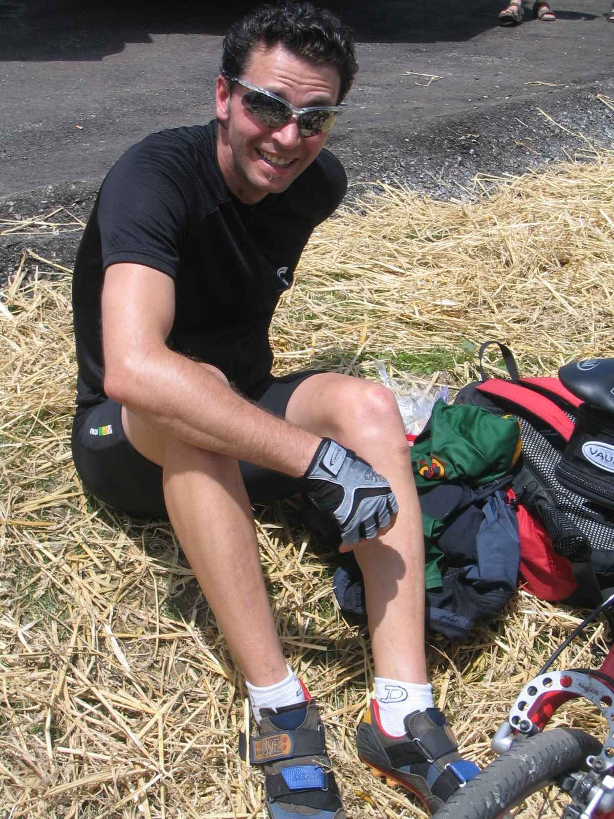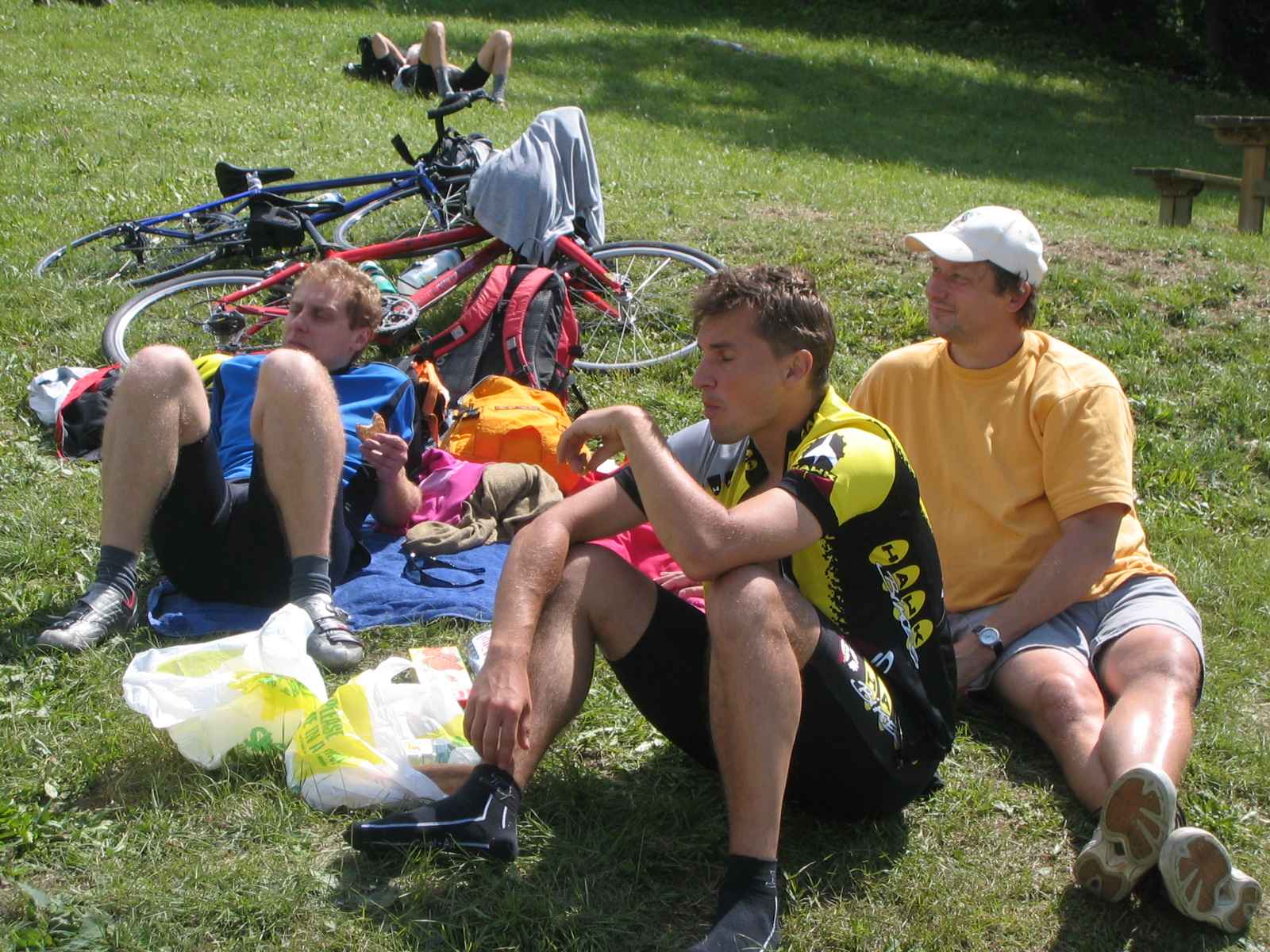 Doch all dieses störte uns nicht weiter und wir steuerten schnell einen Parkplatz an, auf dem wir uns für den ersten Berg präparieren konnten. Der Aufstieg war voller Eindrücke, da überall andere Radfahrer unterwegs war. Zum Schluß ging es auch echt ans Eingemachte, doch wir schafften alle den Gipfel und kamen bis kurz vor das Ziel der Profis. Nach einer kurzen Erholung suchten wir uns einen Platz im Schatten der Sprungschanze wo wir auch auf ein paar andere Berliner Fans trafen (Kay und Katrin).