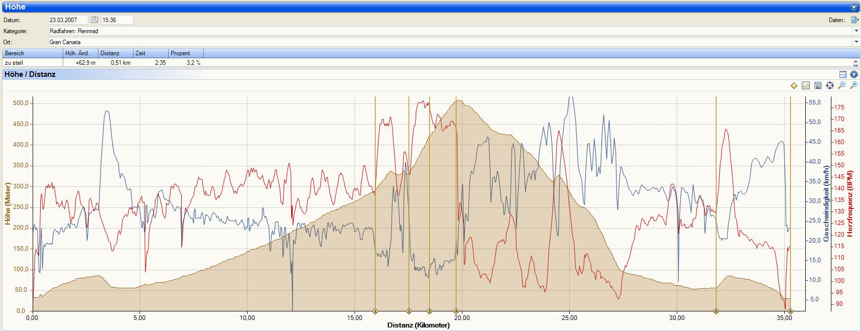 Die Strecke sammelte auf rund 35 Kilometer an die 600 Höhenmeter, was nicht schlecht war, doch ging die Tour sehr schnell rum.