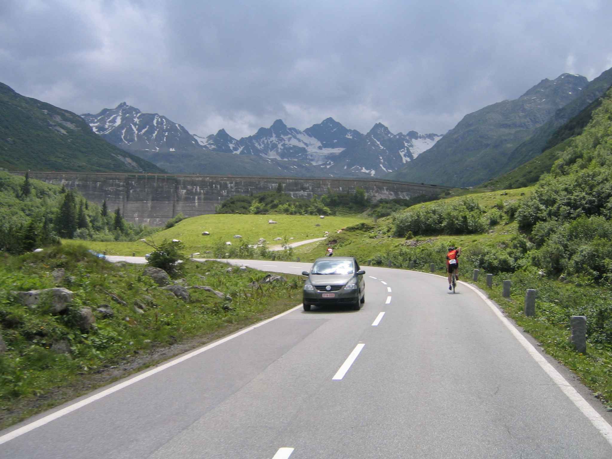 Auf dem Arlbergpass kamen wir gemeinsam an und nutzten auch die Verpflegungsstationen um uns zu erfrischen und die Trinkflaschen aufzufüllen. Im Anstieg zur Bieler Höhe konnte ich mich leicht von Carsten absetzten, was mir die Gelegenheit gab ein paar nette Fotos zu schießen, doch die Abfahrt runter nach Ischgl konnten wir es dann gemeinsam schön ausrollen lassen. Insgesamt ging die Etappe nach den Erfahrungen des Vortags besser als wir befürchtet hatten, auch wenn der Schnitt mit ca. 23,5 km/h etwas niedriger war als gestern. Doch zur Massage meldeten wir uns gerne wieder an und war auch eine echte Wohltat. Im Ort selbst war wieder alles bestens organisiert und es herrschte fast eine Biergartenstimmung. um unser Quartier zu finden mussten wir noch ein wenig in den höheren Teil des Orts laufen.  Dafür waren unsere Taschen schon auf unserem Zimmer als wir ankamen