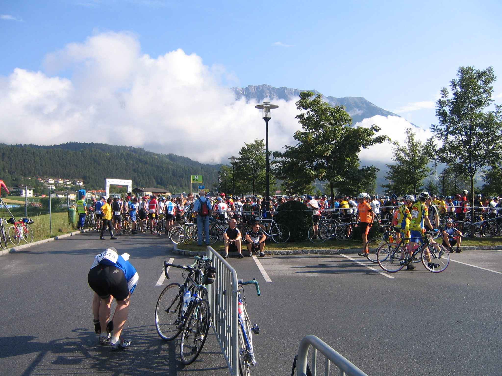 Die zweite Etappe führte uns auf einer Länge von  ca. 146km von Imst über den Arlbergpass und die Bieler Höhe nach Ischgl. Wir hatten die Nacht dann doch ohne weitere Krämpfe überstanden und das Frühstück mit anderen Teilnehmer ließ auch die Euphorie wieder aufflammen. So packten wir unseren restlichen Kram in die Taschen und schwangen uns auf unsere Räder zum Startbereich. Das Wetter war wieder traumhaft und die Stimmung überall gut. Robby Williams empfing uns aus den Lautsprechern mit „We will Entertain you“.