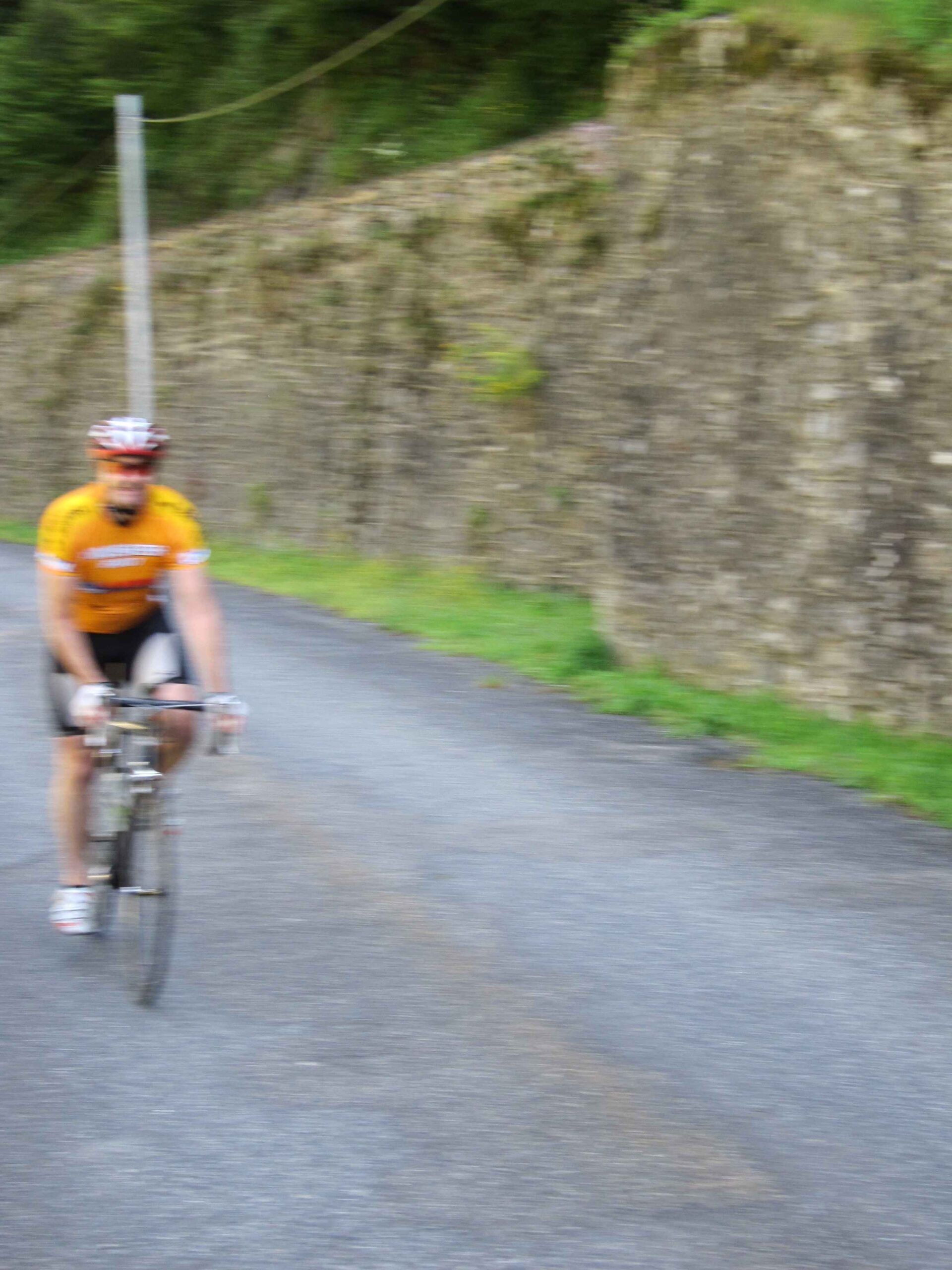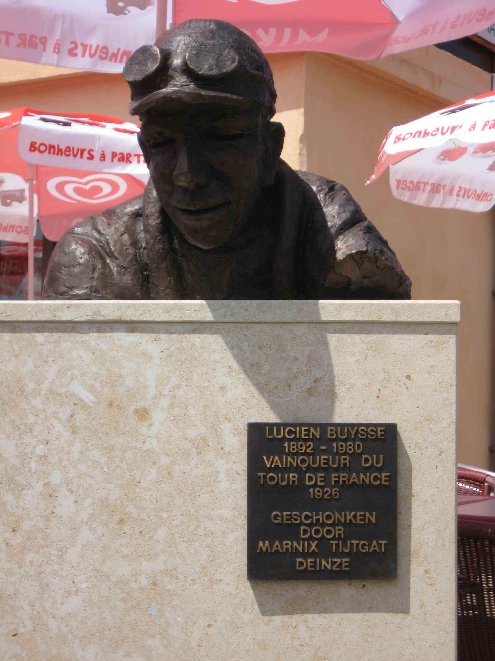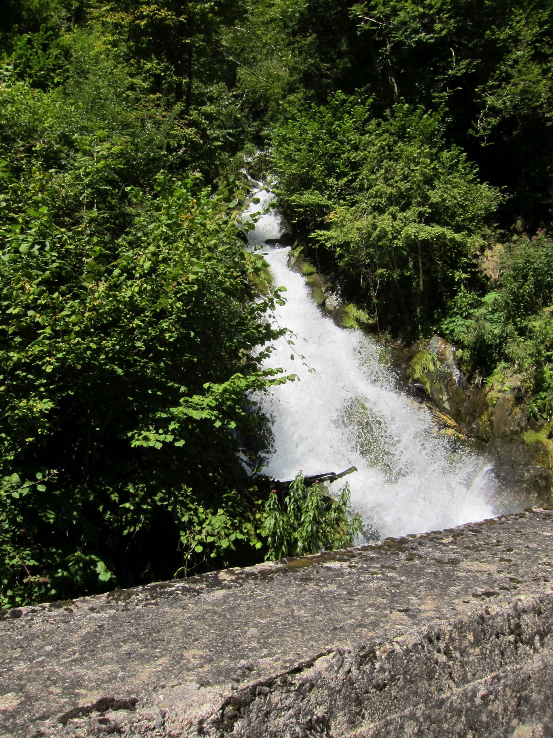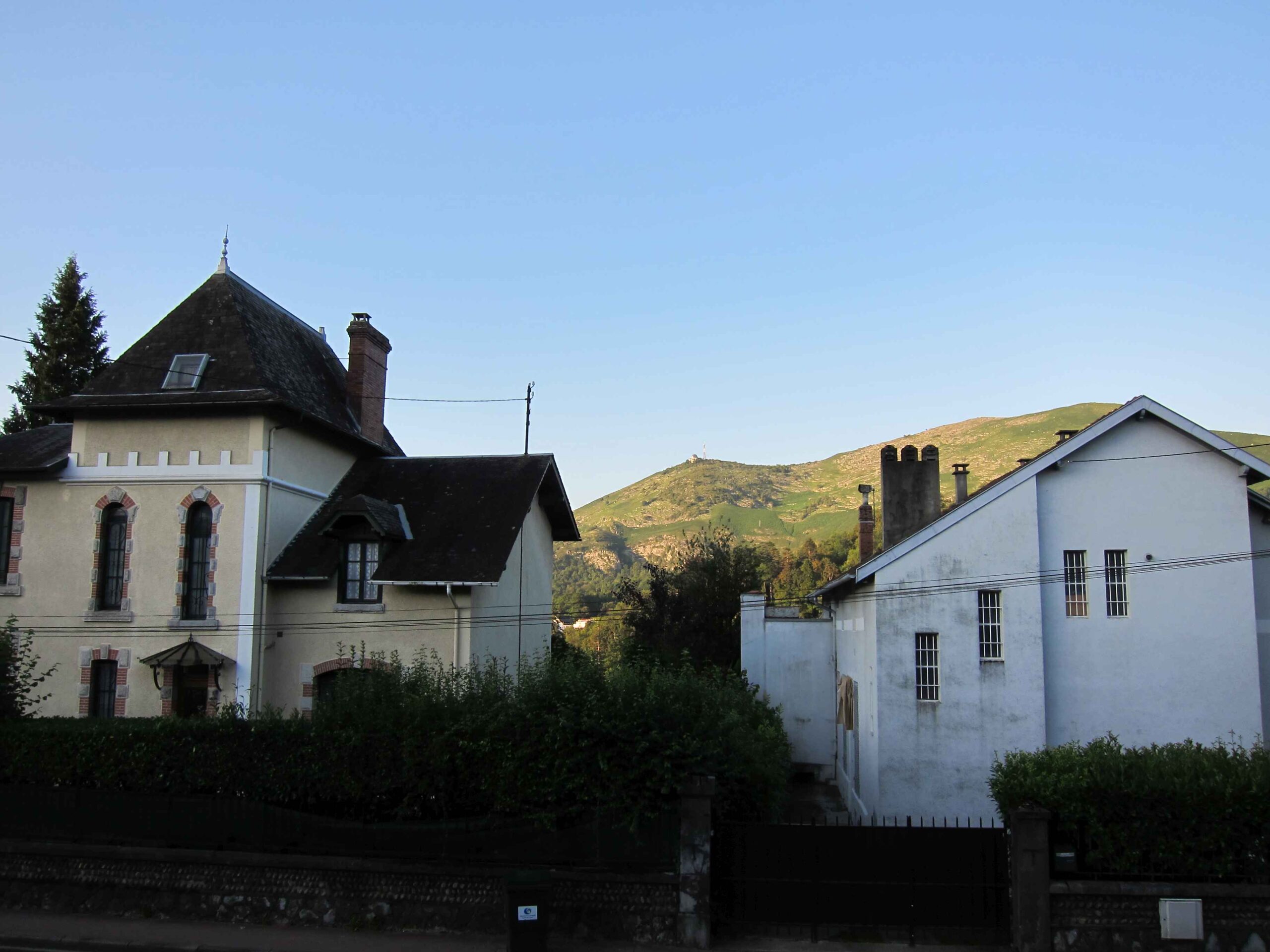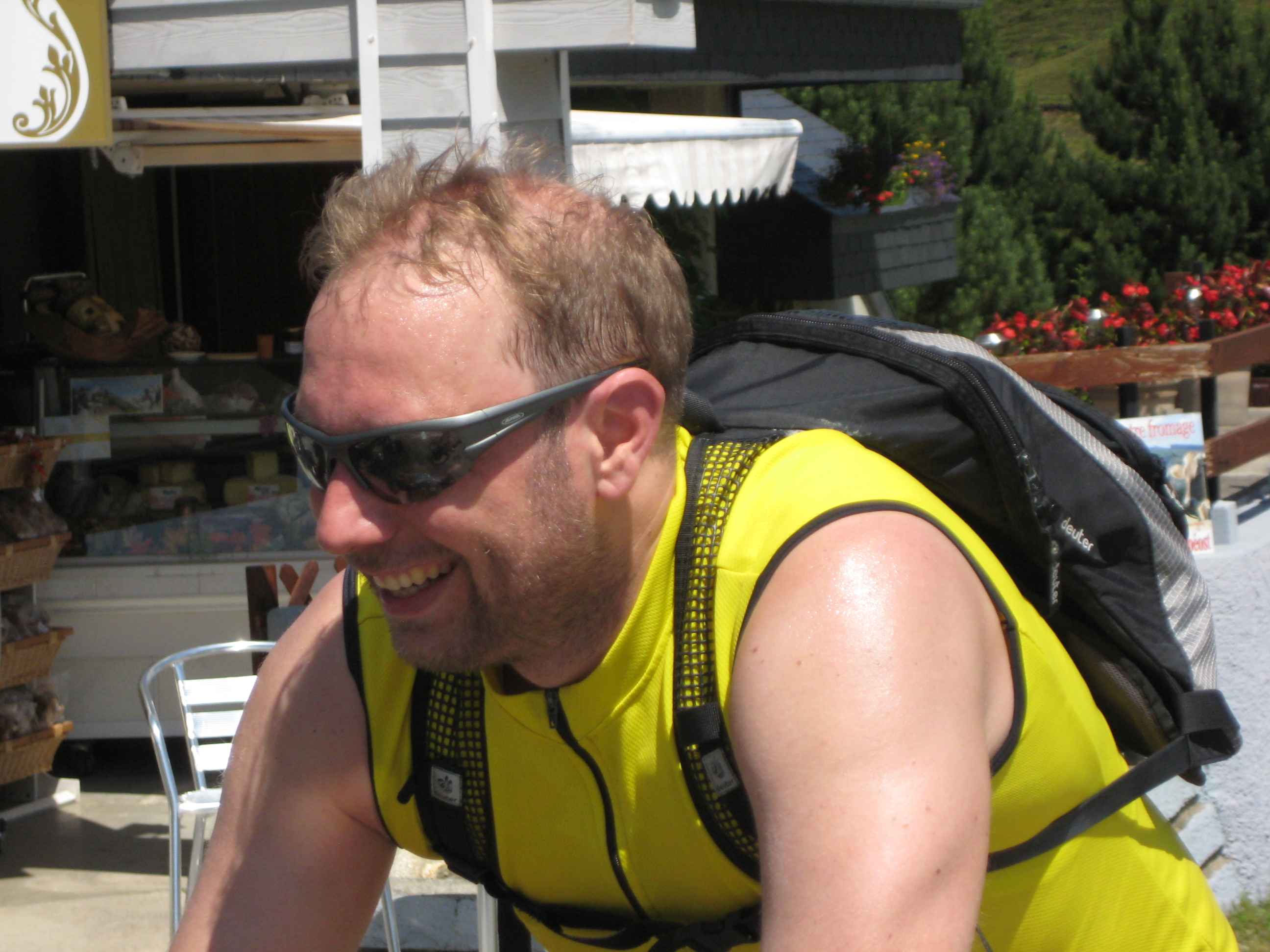 Nachdem wir den ersten Tag gut verkraftet hatten ging es heute in Richtung Osten über den Co de Solour zum Col d’Aubisque. Die Anfahrt durch das schmale Tal war schöner als wir es erwartet hatten und wir genossen die Fahrt in vollen Zügen. Am anstieg zum Solour angekommen ging es mit 9% gleich in die Vollen. Ca. 1-2 Kilometer vor dem Gipfel kam wir aus dem engen Tal heraus und hatten einen wundervollen Blick über den Talkessel hinweg auf den Schlussanstieg zum Col d’Aubisque. In den warmen Temperaturen lief mein Motor richtig gut und ich konnte mich etwas von den anderen absetzen und holte mir den Etappensieg am Col de Solour. Erfreulich war dort eine kleine Raststation, an der wir uns erfrischten und unsere Trinkflaschen netterweise von der Bedienung gefüllt wurden.Der weitere Anstieg zum Col d’Aubisque war genau nach dem Geschmack von Markus. Uns begleitete noch ein zumindest äußerlich ziemlich durchtrainierter Radfahrer, der uns zum Ende des Berges auch stehen ließ. Es folgten noch die obligatorischen Gipfelfotos, zumal dort die berühmten drei großen Räder der Tour stehen. In der Abfahrt war ich wieder in meinem Element, während sich Fayek insbesondere bei dem unbeleuchteten Tunnel nicht wirklich wohl fühlte.