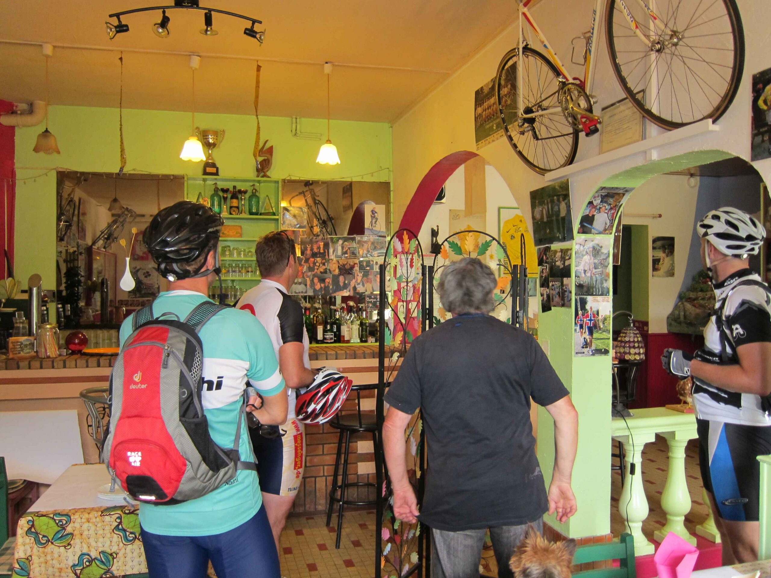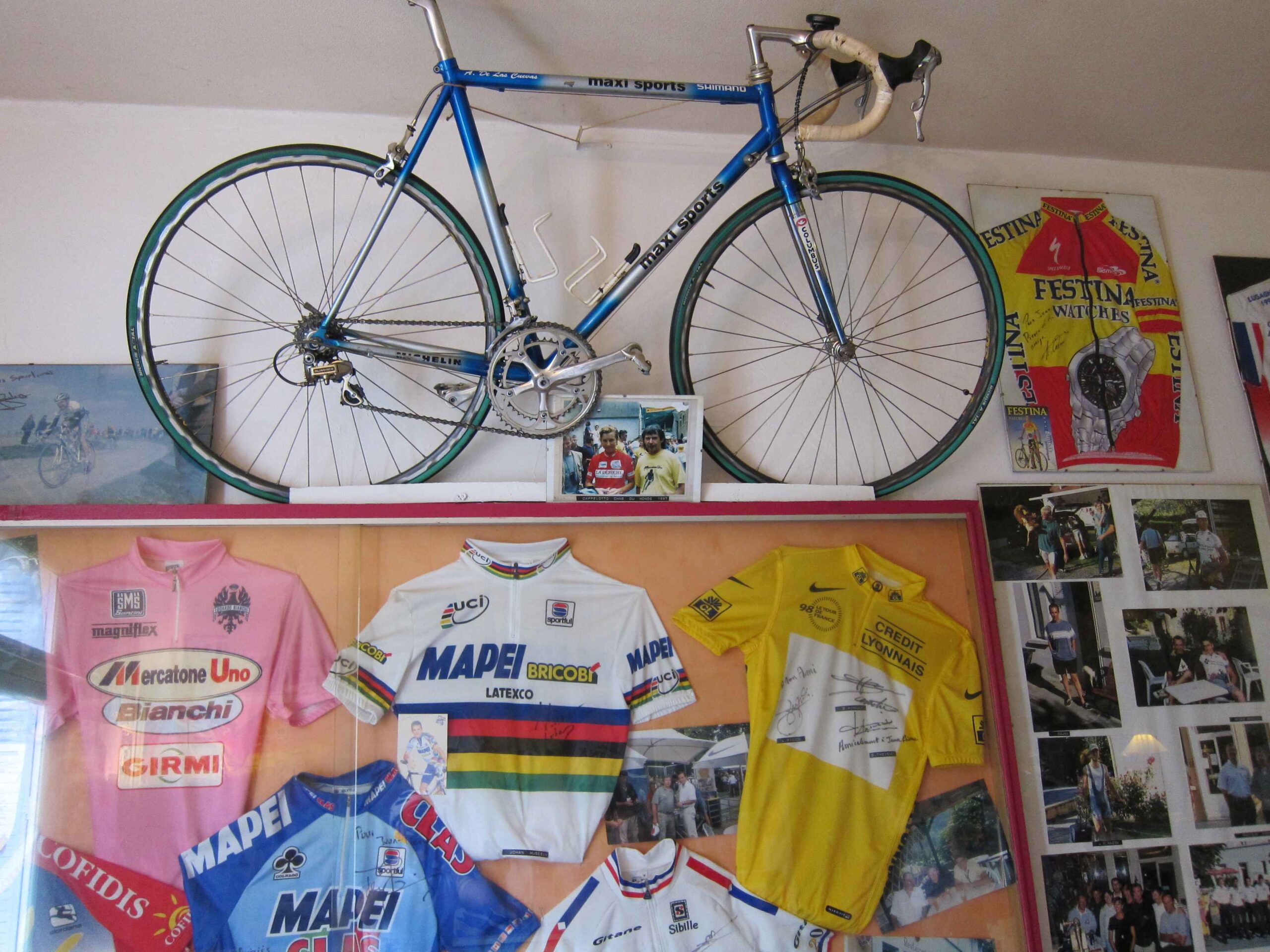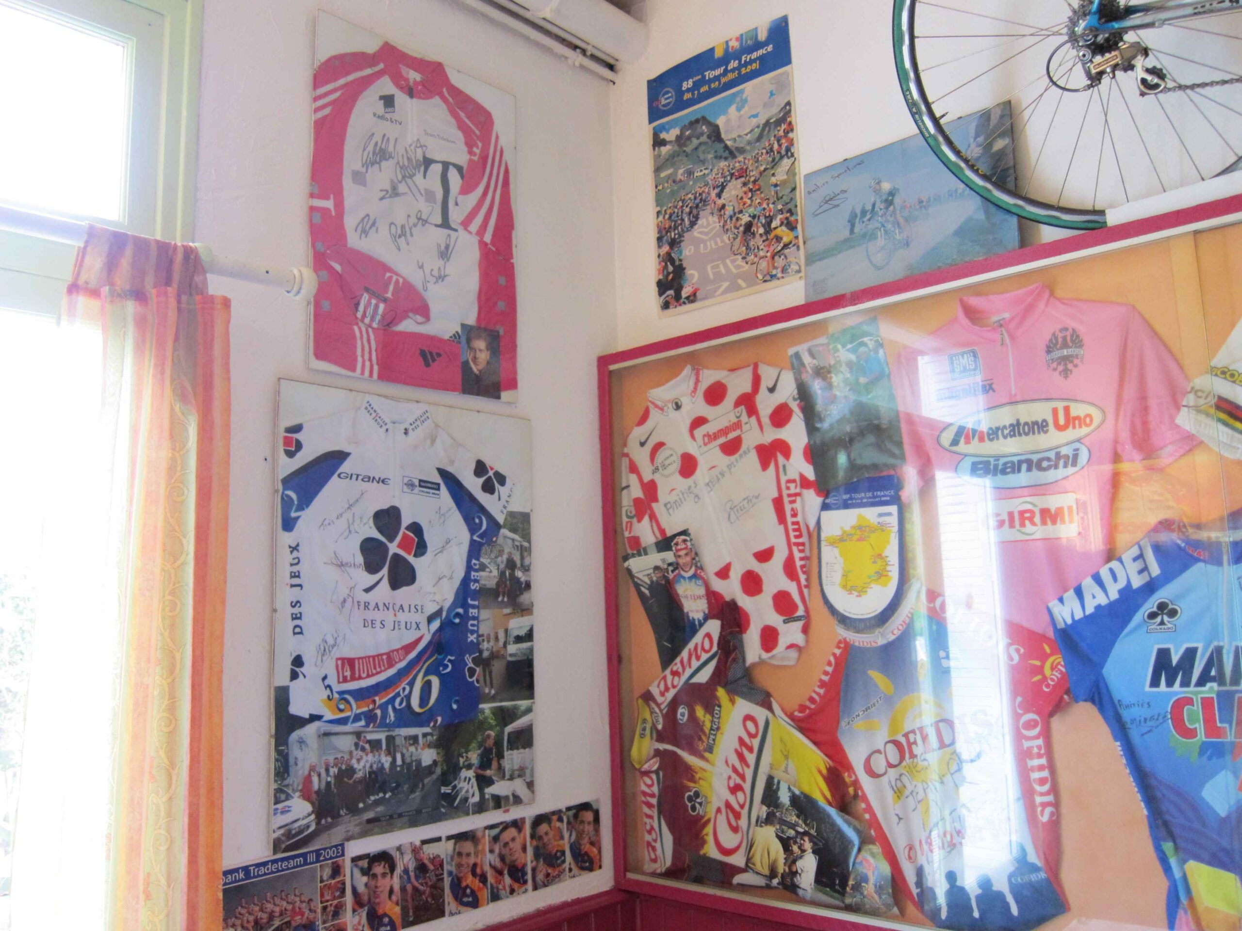 Erneut gab es eine Restauration, in der wir uns erholen konnten und die Aussicht auf die Berge genossen. Auf dem Rückweg machten wir an einem privaten Tour Museum halt, von welchem ich im Tour Magazin gelesen hatte. Das zugehörige Restaurant war zwar geschlossen, trotzdem zeigte uns der Inhaber stolz seine Sammlung der Devotionalien von den unterschiedlichsten Tourteilnehmern aus mehreren Jahrzehnten.