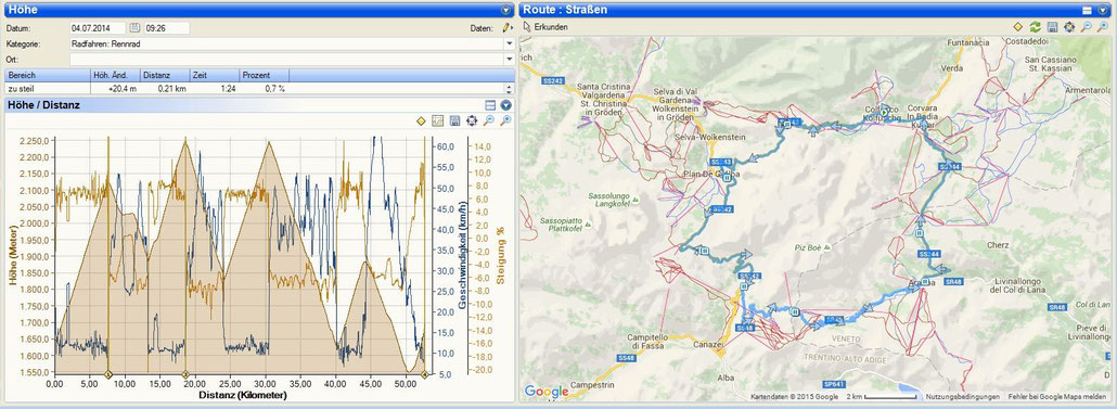 Der Tag fing mit Sonne und vor allem ohne Kopfschmerzen an. So waren wir alle frohen Mutes und präparierten uns nach dem Frühstück für ein Tour um den Sellastock. Die Umrundung machte uns viel Spaß. Wir hielten immer wieder an und bestaunten die wunderschöne Landschaft. Auch die vielen anderen Radler, die unterwegs waren trugen zu unserer guten Stimmung bei. Alle hielten sich am Berg etwas zurück, um nicht unnötige Kraft für das Rennen am Sonntag zu vergeuden.
