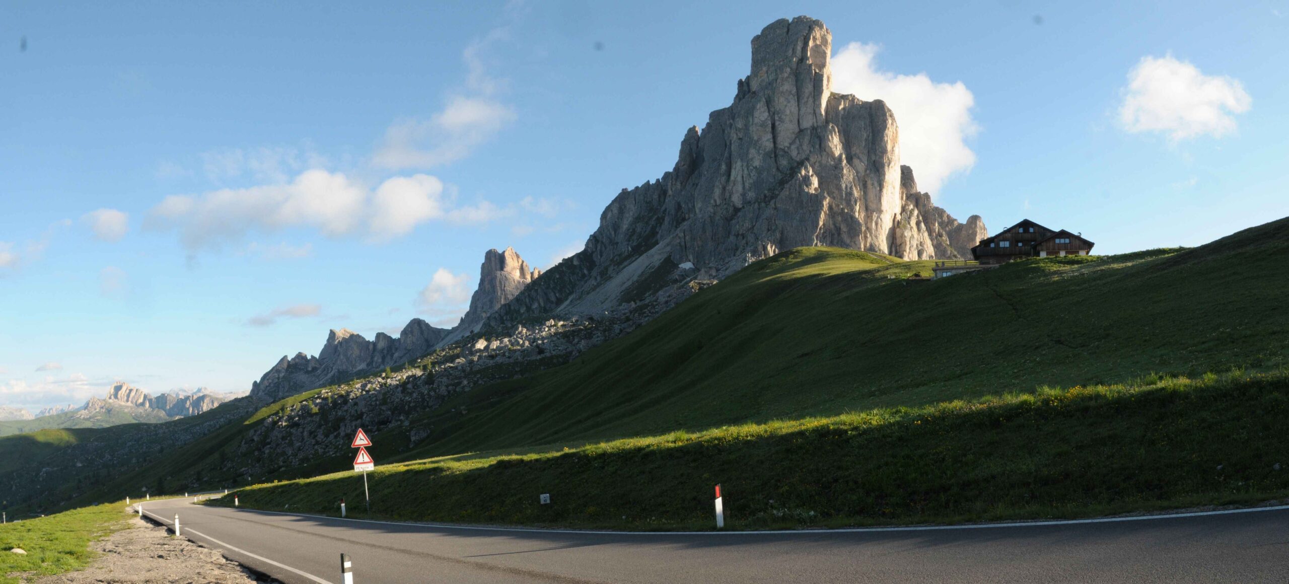 Jetzt ging es an unserer Unterkunft vorbei und in Corvara schon mal durch das Ziel. Die Teilnehmer, die sich für die kurze Strecke entschlossen hatten waren somit bereits fertig. Anschließend ging es wieder über den Campolongo doch in Arabba dann nicht mehr in Richtung Pordoi sondern in die Überführung zum Passo Giau. Bis hierher fühlte ich mich spitze und hatte die Tour sehr genossen. Ich fand eine tolle Gruppe, in der sehr zügig über die kommenden 30 Kilometer zum Anstieg des Giau gefahren wurde. Das eine oder andere Mal setzte ich mich dabei sogar an die Spitze und übernahm Führungsverantwortung. Leider sollte sich dieses als Fehler herausstellen. Durch die schnelle Fahrt vergaß ich etwas das Essen und Trinken und so war ich zu Beginn der Auffahrt zum Passo di Giau nicht mehr im Vollbesitz meiner Kräfte. An der Abzweigung zur langen Strecke stand plötzlich Carsten und wartete auf uns. ich wollte allerdings nicht warten, da ich nicht wusste wo Fayek und Frank waren und mir diese Pause nicht gut bekommen wäre. So fuhr ich weiter und Carsten kurz danach hinterher.