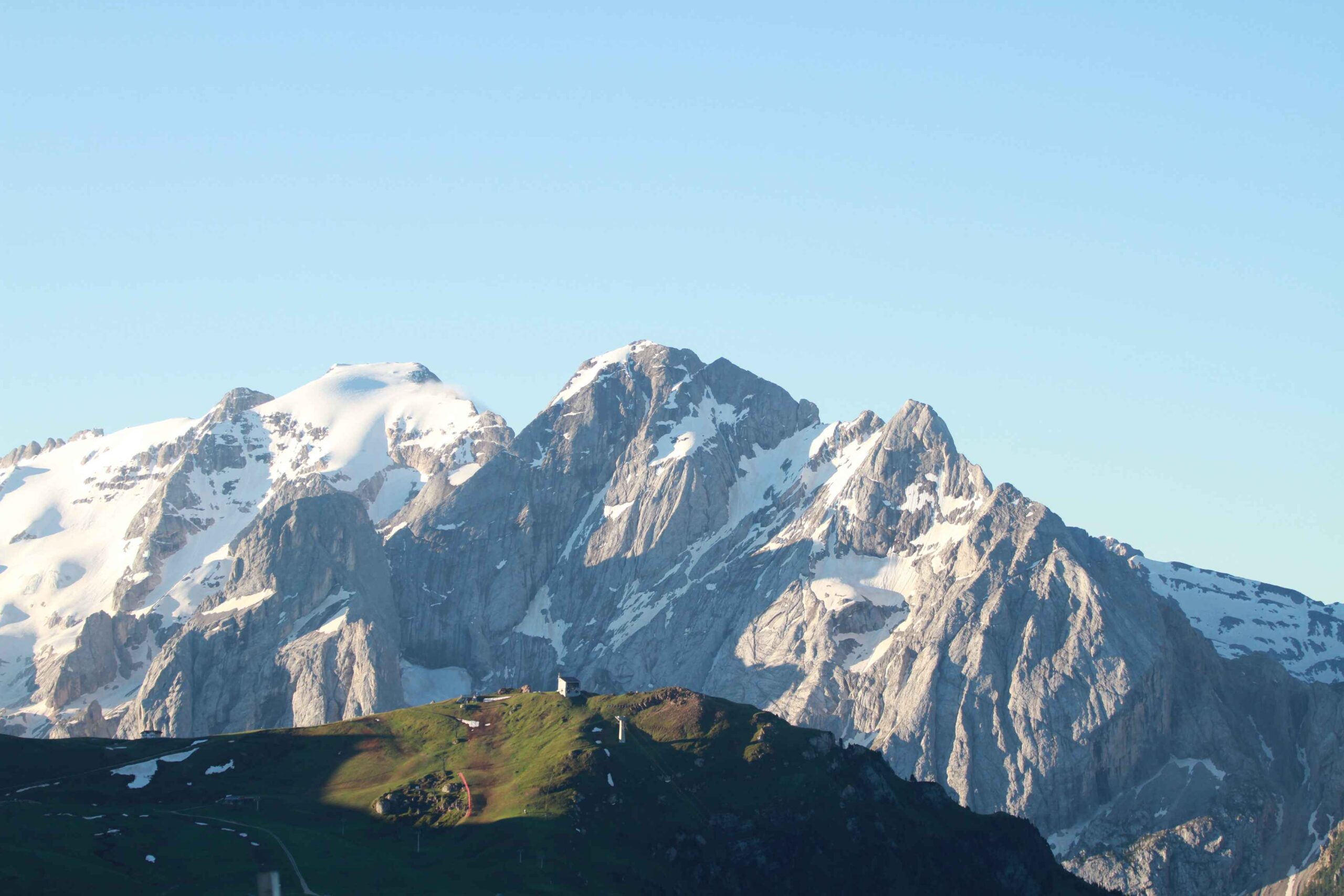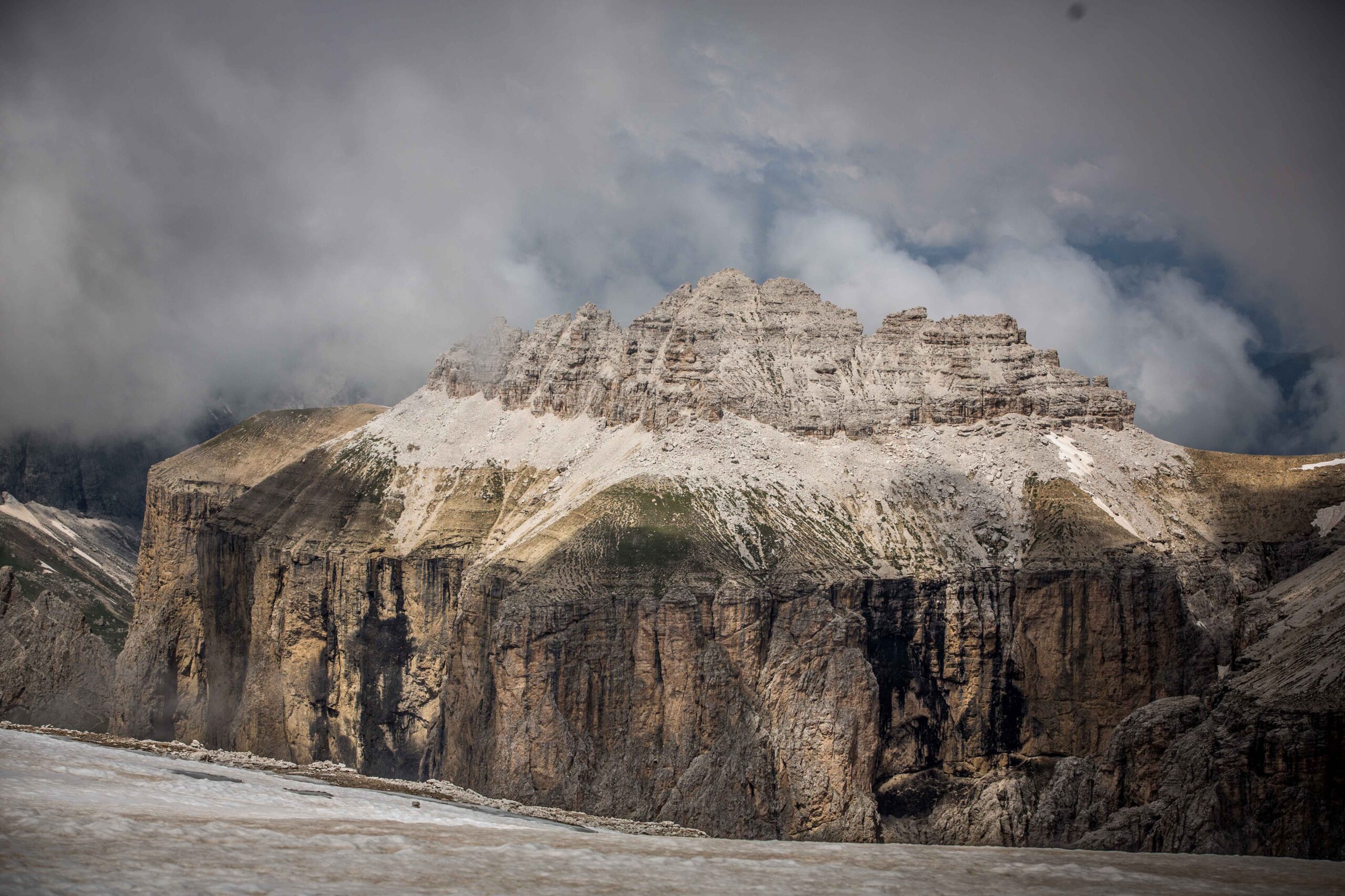 Dieses war der letzte Berg der Sellarunde und noch fühlte ich mich gut. Das Grödnerjoch bot im Aufstieg noch eine Verschnaufpause mit einem kleinen Flachstück und so erklomm ich ebenfalls diesen Gipfel. Oben angekommen blieb ich kurz stehen, um mir meine Windjacke überzuziehen, da die anstehende Abfahrt etwas länger war und nicht kalt werden wollte. In diesem kurzen Moment kam Casi an mir vorbei und ging als erster in die Abfahrt. Von Fayek und Frank hatte ich bis dato nichts gesehen.