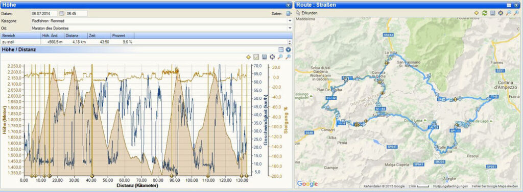 Fayek hatte mich nur deswegen nicht überholt, weil er an jedem Verpflegungsstand angehalten und ordentlich zugeschlagen hatte. Den Passo Giau hatte er von uns dreien in der schnellsten Zeit genommen !