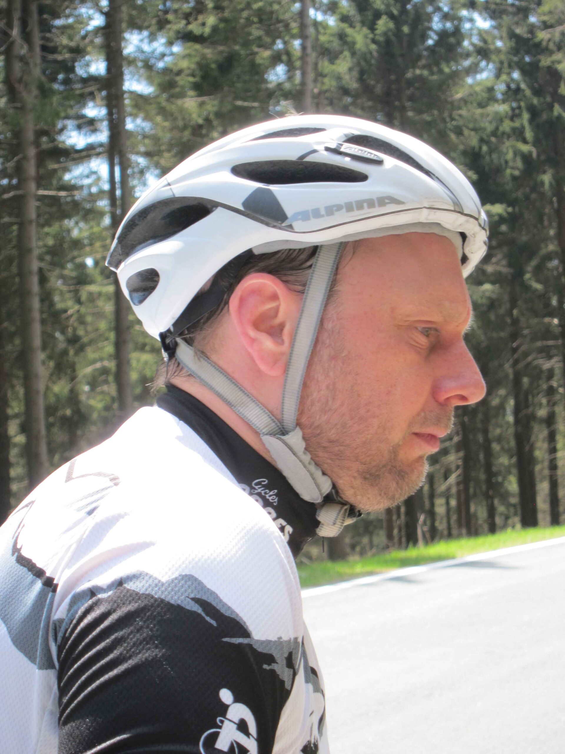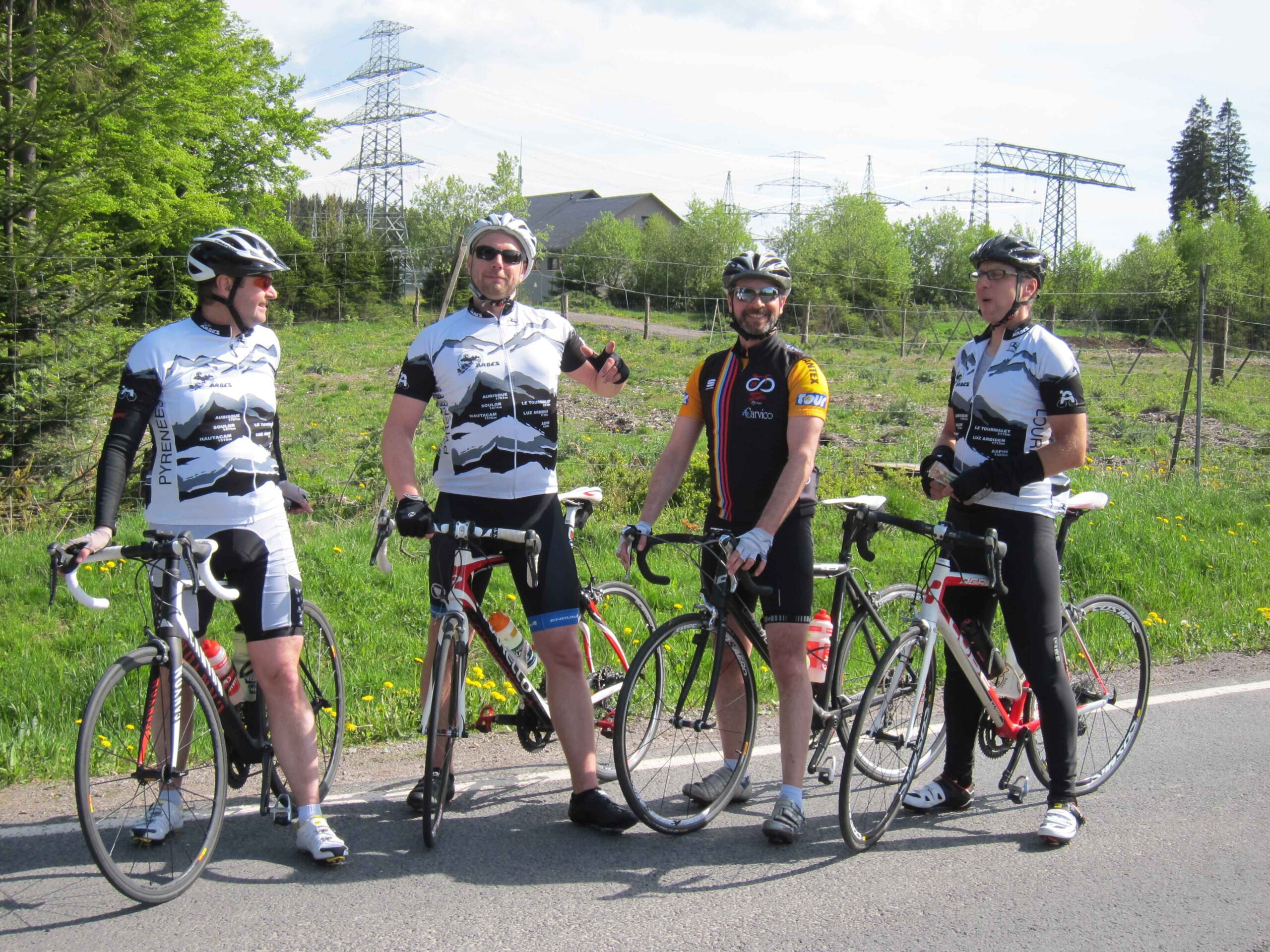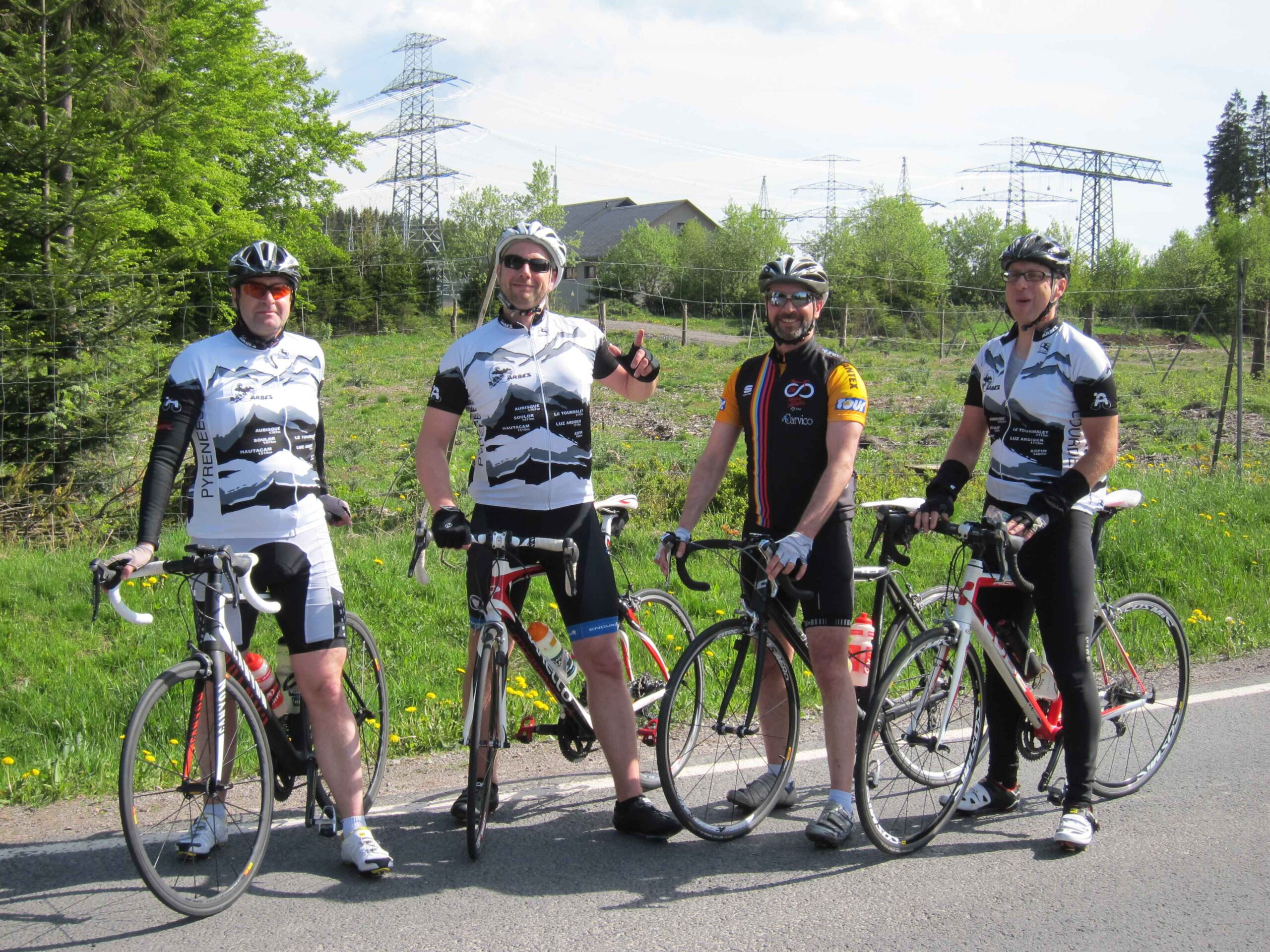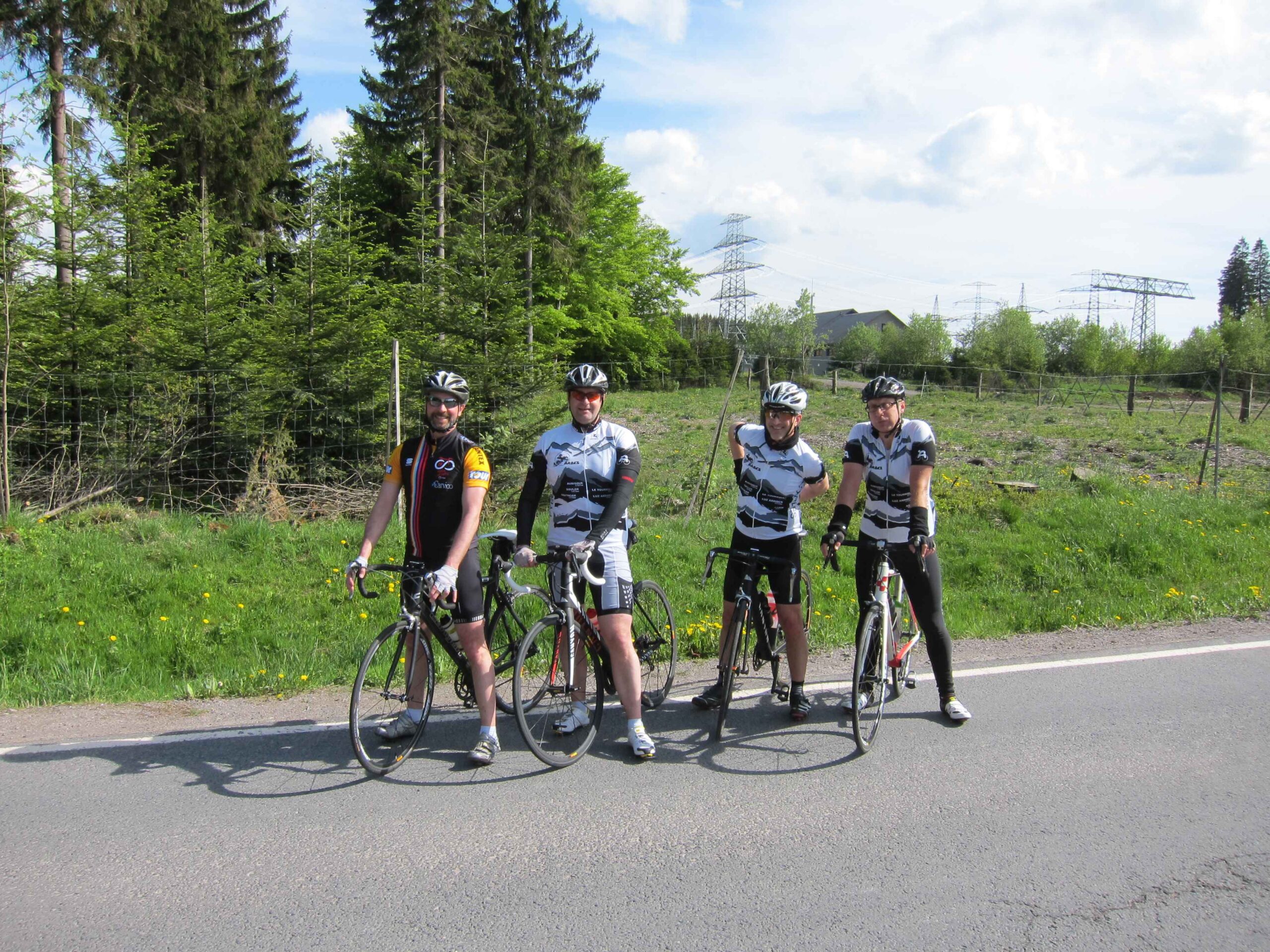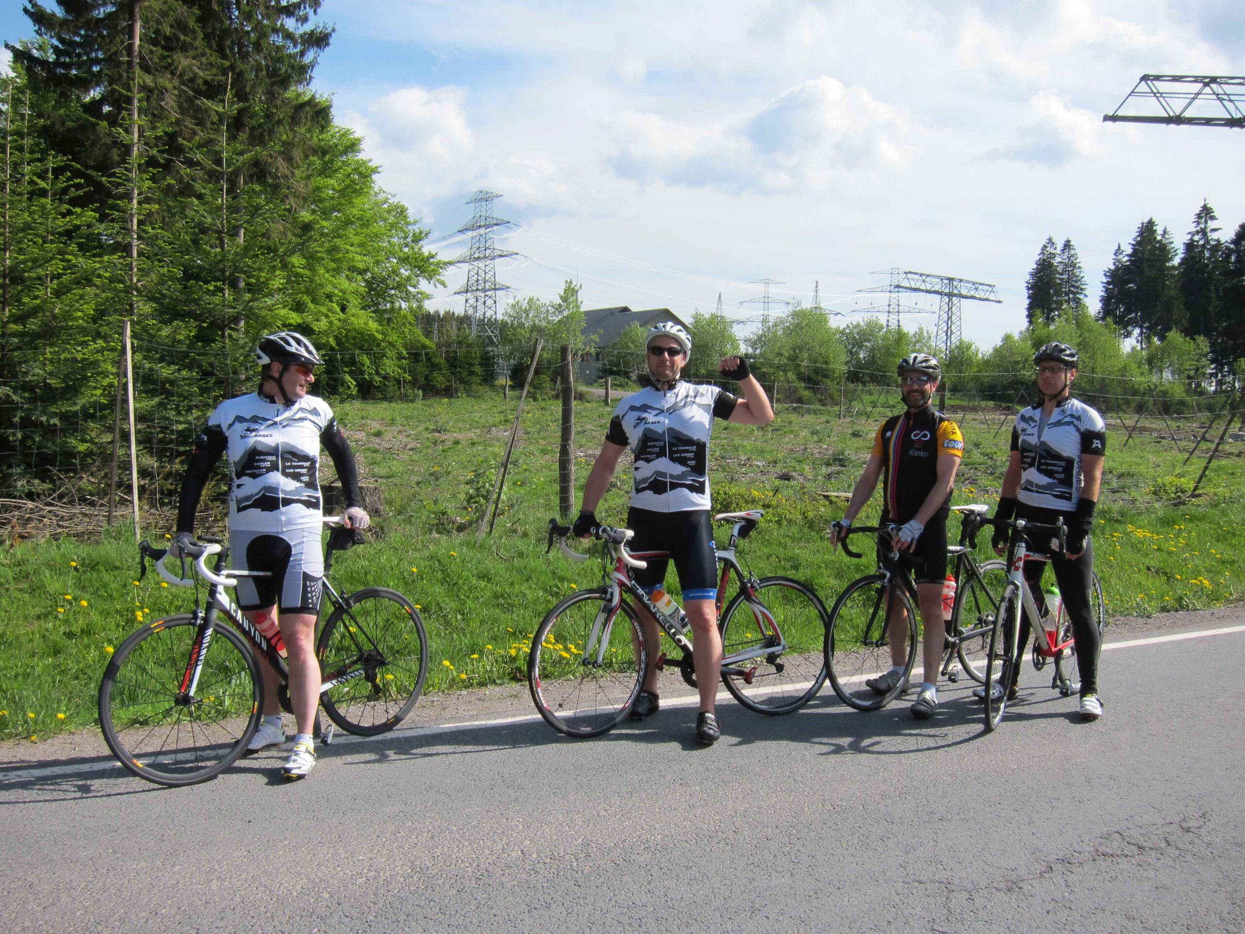 Jetzt waren wir in voller Mannstärke zusammen und die zweite Runde konnte losgehen. Carsten war ganz interessiert an meinem neuen Renner und machte gleich eine kurze Probefahrt, bevor es wirklich los ging. Nach einer Abfahrt hinunter nach Ilmenau ging es einen längeren Anstieg mit zwischenzeitlich 12% hoch. Hier zeigte sich gleich, dass Carsten mal wieder eine gute Form hatte und sogar Fayek in Schach hielt. Da ich diesmal keine Kamera dabei hatte, übernahm Frank das Bilder schießen und ließ uns auch immer wieder für ein paar sehr schöne Fotos anhalten. Nach einer weiteren kleinen Abfahrt ging noch einmal ein schönen Anstieg mit ca. 7% hoch. Danach ging es dann in einer schönen langen Abfahrt wieder runter nach Ilmenau und es blieb nur noch der Schlussanstieg nach Manebach