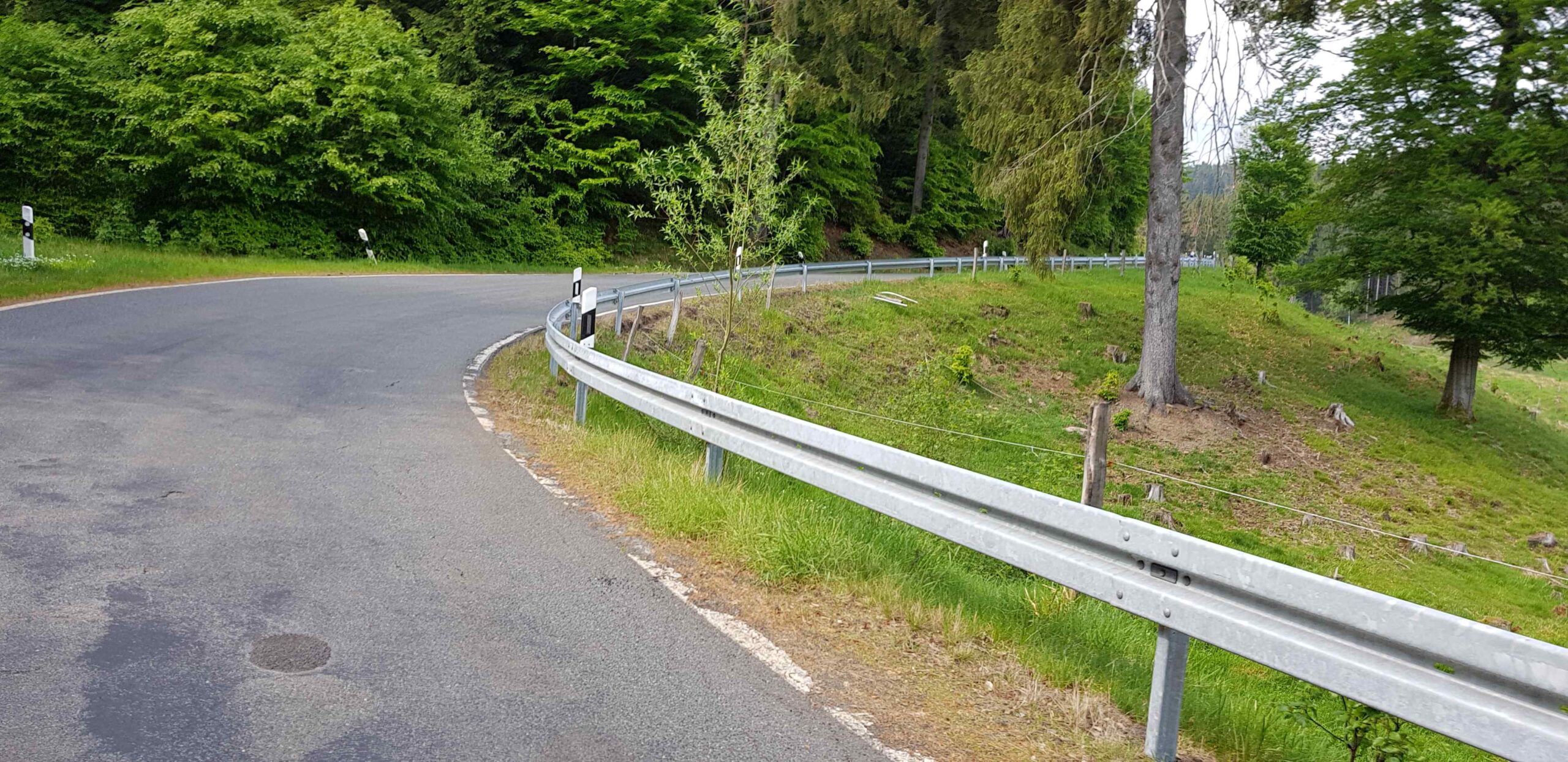 Doch hatte wir Glück. Die Straße war bereits gewalzt worden und auch nicht so frisch wie damals. Man roch zwar den frischen Teer, doch haftete nichts an den Reifen und die Fahrbahnfläche war fest genug. So hatten wir erneut eine sehr schöne Strecke für uns. Der weitere Verlauf bis Stiege war wunderschön und wir werden ihn bestimmt in irgendeine zukünftige Tour einbauen. Wir mündeten auf eine größere Bundesstraße, die so seid dank nicht allzu viel Verkehr hatte. Mein Garmin zeigte dann plötzlich einen Abzweig nach rechts an, den ich ohne GPs sicherlich nicht gefahren wäre. Auch das Schild mit 12% lockte nicht direkt, doch Vorgabe ist Vorgabe. So kämpften wir uns eine kleine Straße die Steigung hinauf. Da uns auch Autos entgegen kamen, war ich mir sicher, dass wir richtig waren. Der Anstieg war nach 1,5km auch schon wieder zu Ende. Ob entdeckten wir ein sehr nettes Ausflugslokal und genehmigten uns mit Kuchen, Kaffee und Eisbecher eine schöne Pause. Im Nachgang entdeckte ich, dass es dort sogar Übernachtungsmöglichkeiten gab, die vielleicht mal für eine Ostharz-Tour in Frage kommen könnten.