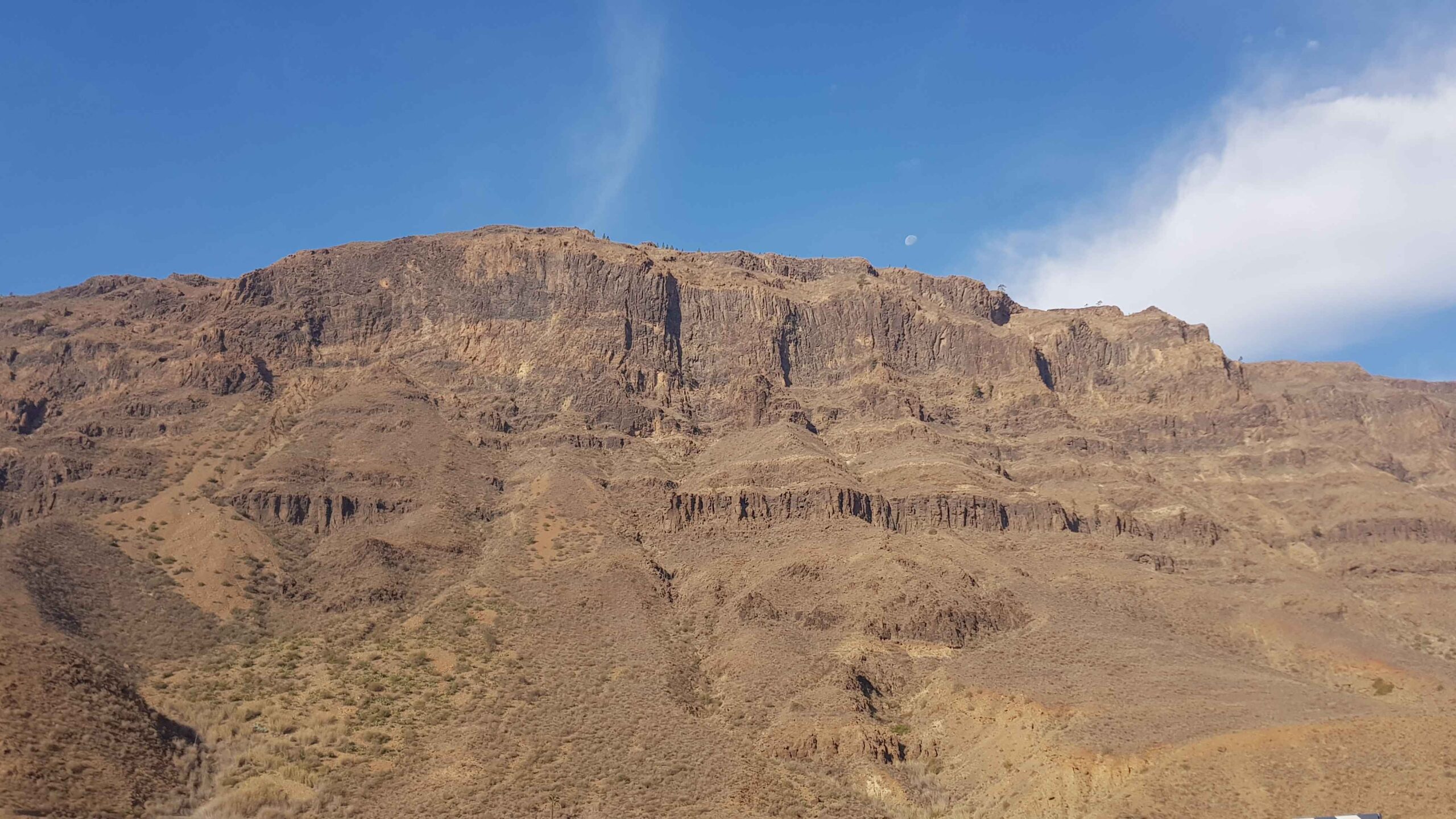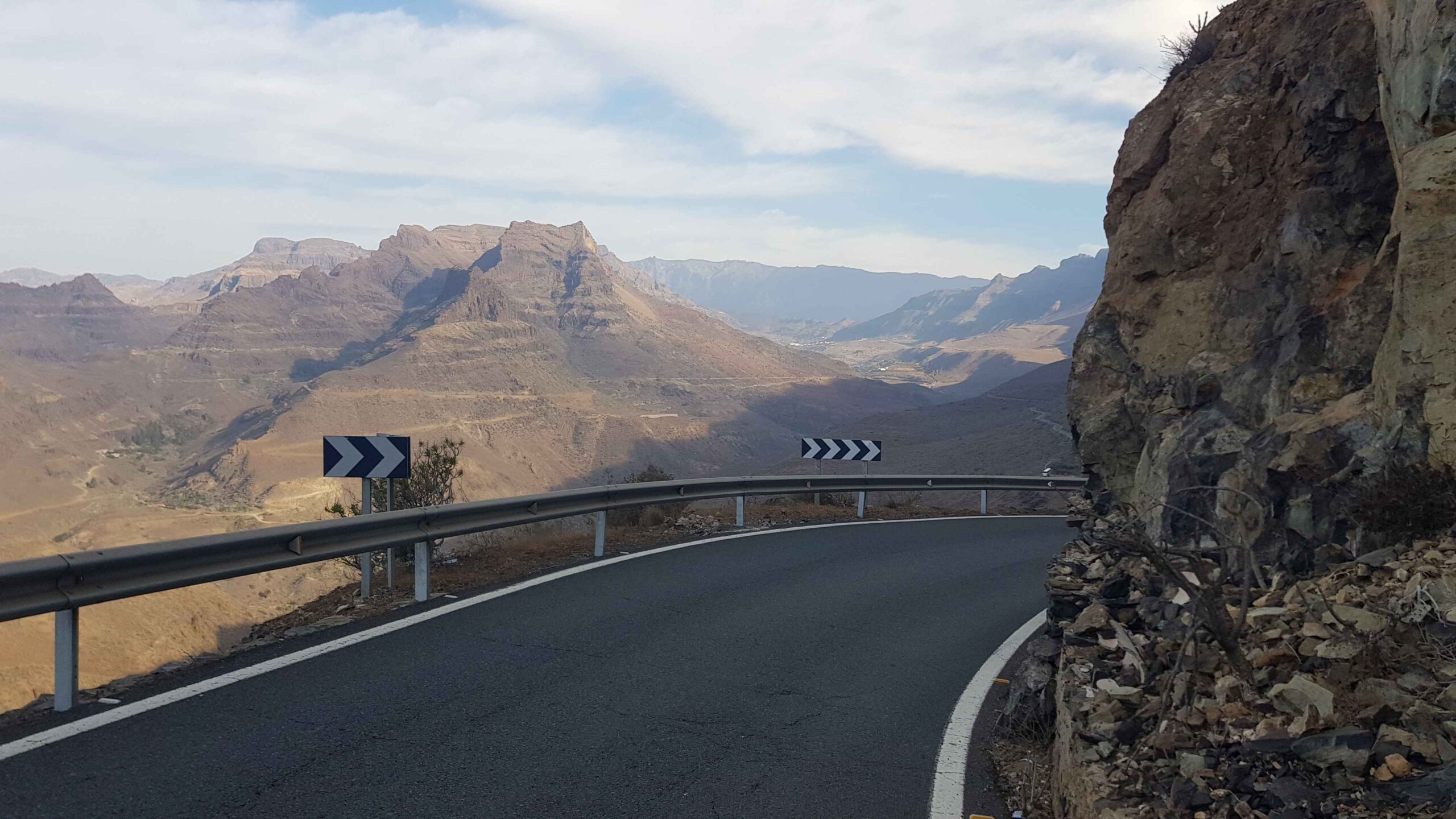 Es ging heute auch zum ersten Mal in Richtung San Bartholome nach oben. Den ersten Abschnitt bis zum Mirador de Fataga hatte ich am ersten Tag ja schon mal gemacht, doch jetzt ging es weiter. Meine Beine wurden langsam warm und ich spürte, dass ich meinen Rhythmus fahren konnte. In San Bartholome legte ich einen kleinen Stopp ein and einem kleinen Straßencafe ein und genoss eine Cola und zwei leckere Makronen. Ansonsten war die Auffahrt eher ereignislos, schön war aber, dass doch viele andere Rennradfahrer unterwegs waren. So hatte man immer wieder Ablenkung und Motivation.