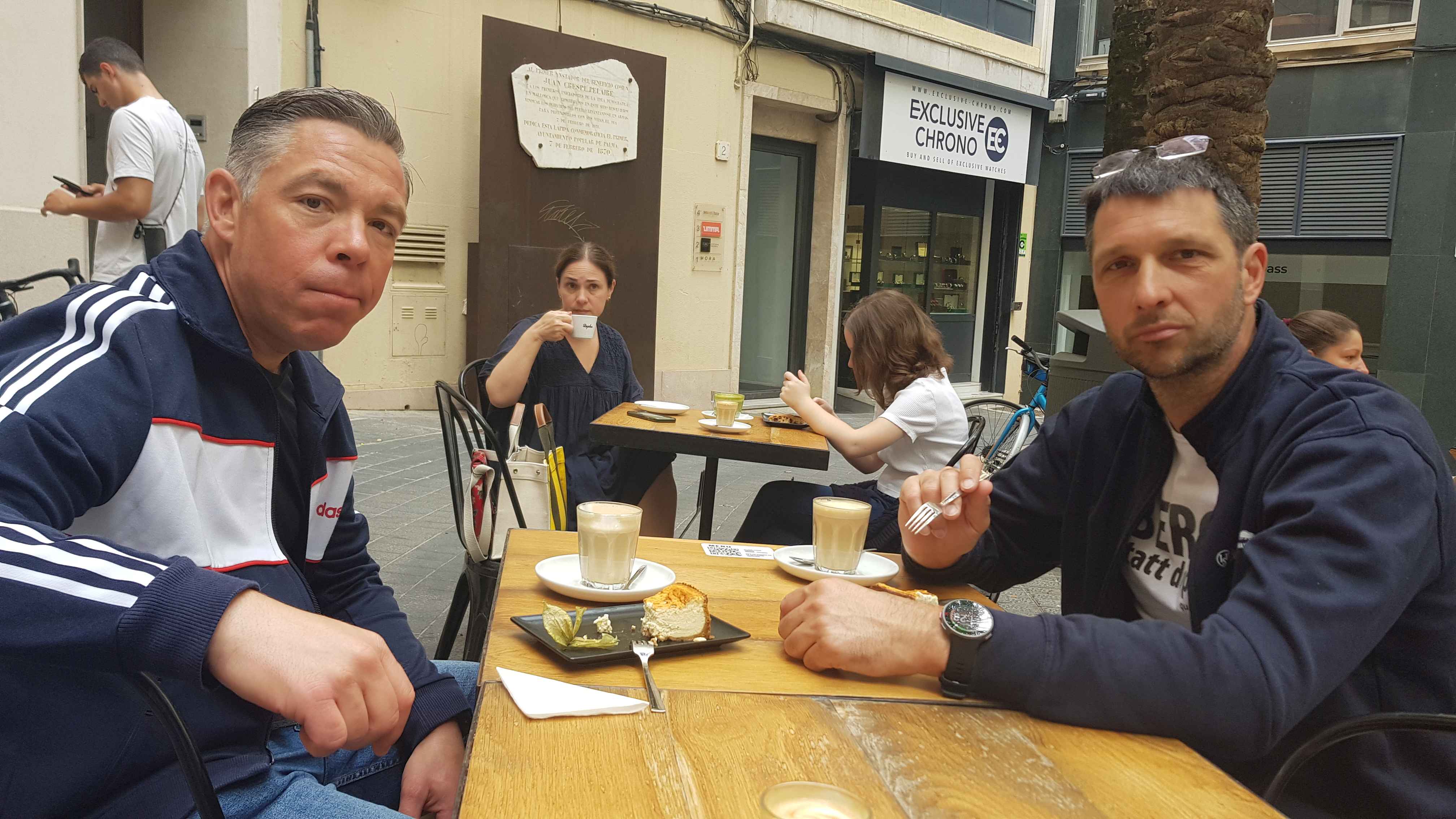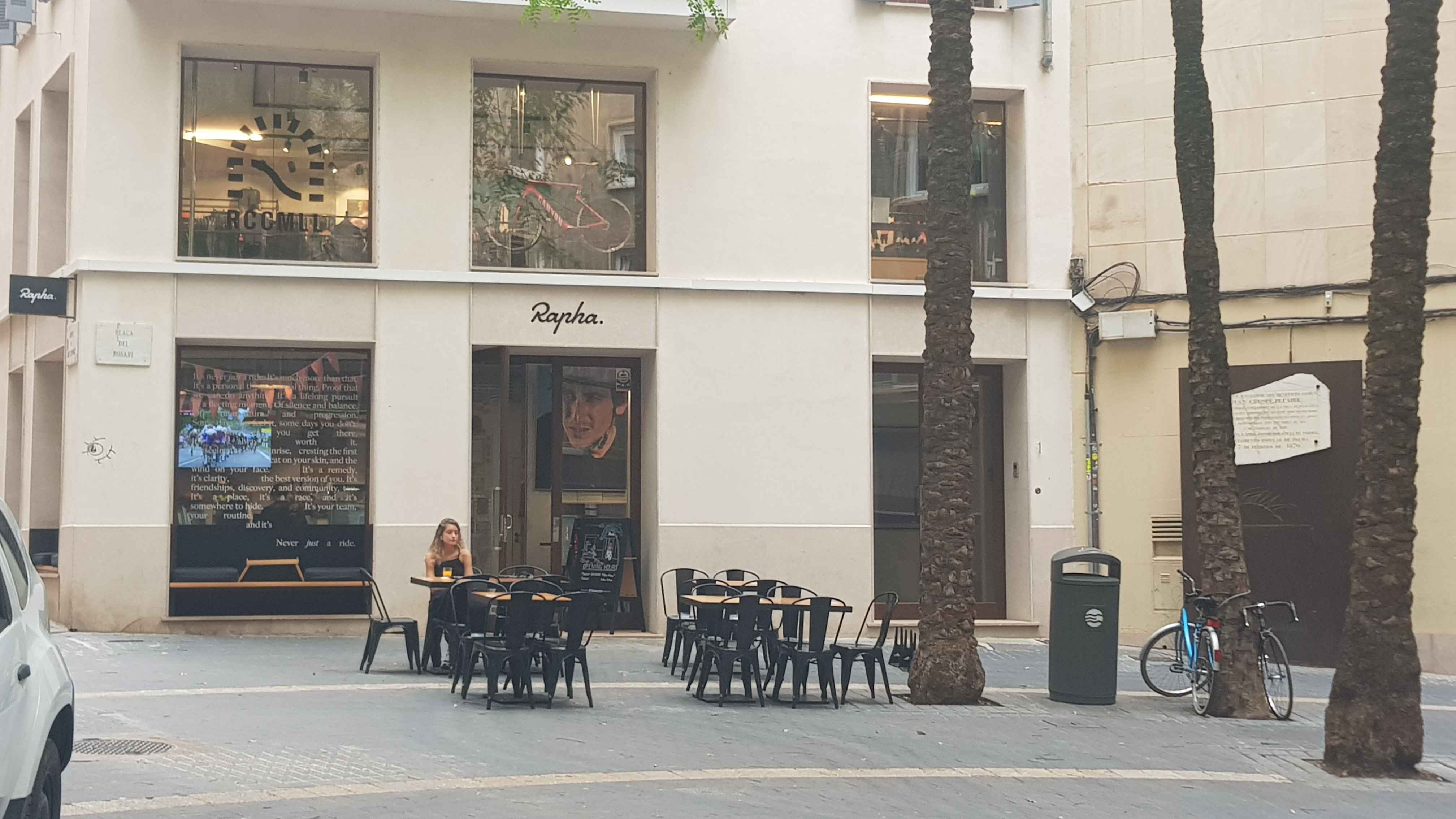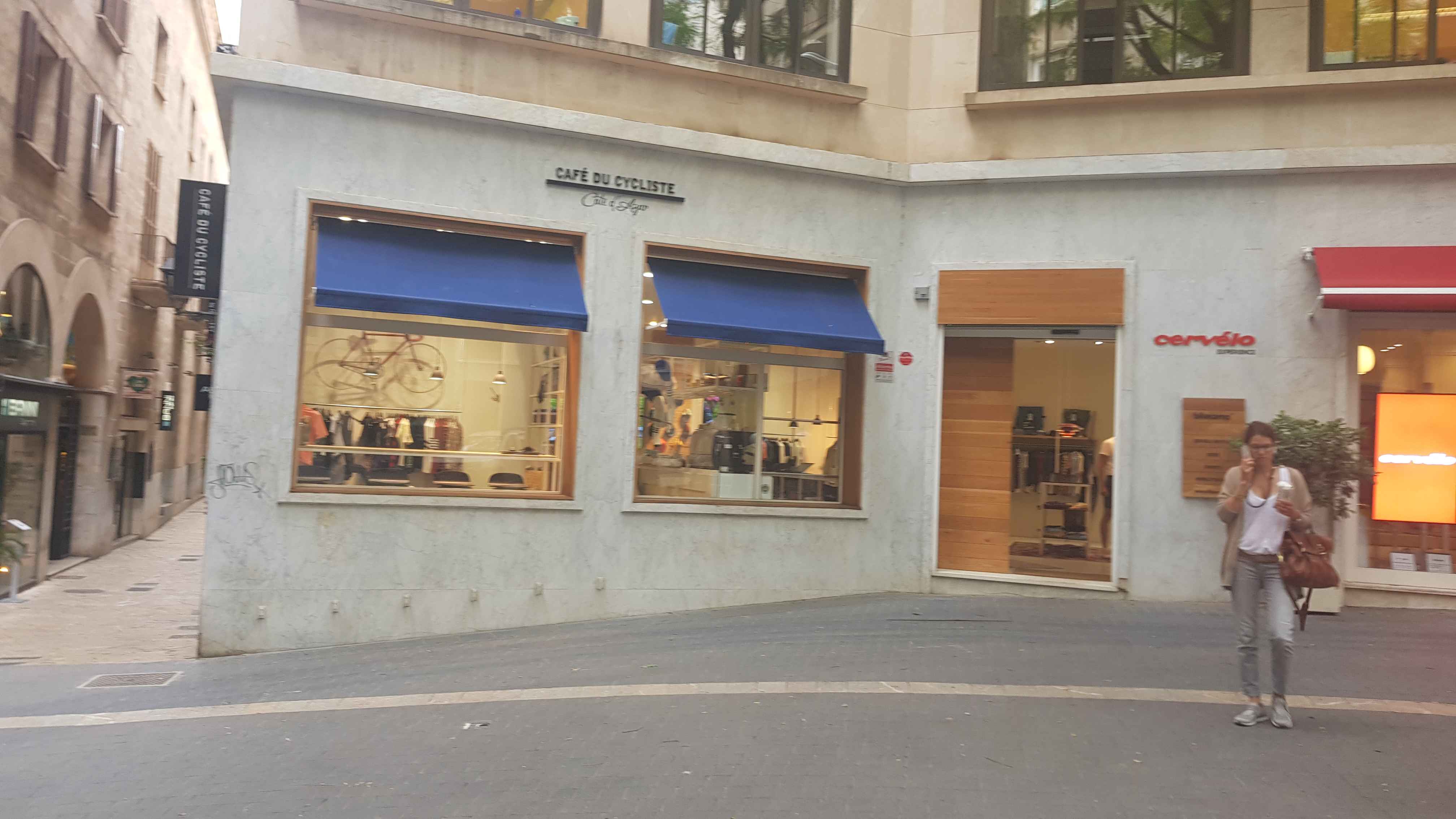 Der Tag fing verregnet an und wir einigten uns darauf nicht im Regen zu fahren. Da wir auch einen Besuch in Palma auf dem Plan hatten und ja auch gerne mal in den Cafe du Cycliste Shop gehen wollte setzten wir uns kurzerhand ins Auto und fuhren nach Palma. Wir fanden dank Google auch eine Tiefgarage und auch gleich einen Parkplatz. Oberhalb ließen wir uns erneut von Google zum Laden führen. Etwas überrascht stellten wir fest, dass direkt neben dem Cafe du Cycliste auch noch Rapha einen Store hatte und Cervelo gerade im Aufbau des Shops war. Zuerst gingen wir zu CdC, denn eigentlich hatte ich ja vorgehabt mir dort diverse Sachen zu kaufen, doch zum einen gefiel mir die Auswahl nicht so sehr und zum anderen waren die Preise doch verdammt hoch. Um nicht mit leeren Händen zu gehen erstand ich dann doch noch eine Trinkflache und ein T-Shirt mit SaCalobra drauf. Jetzt gingen wir in den Cervelo Shop ,wurden aber freundlich darauf aufmerksam gemacht, dass der Laden noch gar nicht eröffnet sei. So zogen wir wieder ab und wandten uns dem Rapha Shop zu. Auch hier fand sich bei der Kleidung nichts, was uns und insbesondere mich wirklich ansprach. Ich fand die Farben recht eigenwillig und es gab kein Schnäppchen u erwerben. Immerhin hatte der Shop noch ein kleines Cafe und wir genehmigten uns ein kleinen zweites Frühstück.