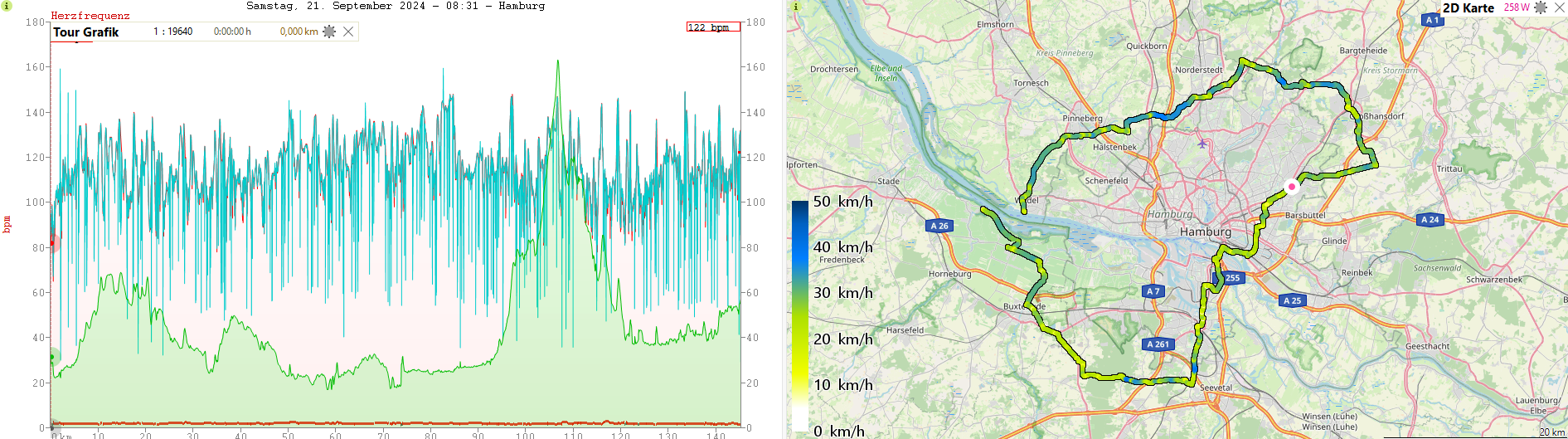 Es stand die Umrundung von Hamburg an. Da Hamburg doch etwas kleiner als Berlin war due Strecke auch kürzer. Eigentlich wären es wohl rund 170km gewesen, doch da wir am nächsten Tag auch noch fahren wollten plädierten Fayek und Frank dafür die Strecke ein kleines bisschen abzukürzen, doch 150 Kilometer standen trotzdem auf dem Plan.