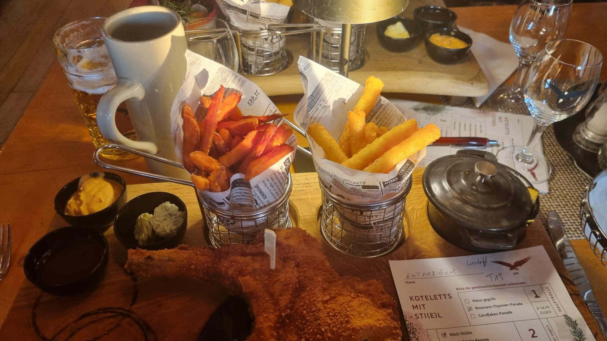 Auf Nachfrage bei unseren Gastgebern nach einem netten Lokal nannten sie uns eine ziemlich guten Tipp, der neben einem Superkotelett auch eine tolle Aussicht über die Rhön bot. So hatten wir einen sehr gelungen Abschluss, denn Morgen sollte es nach einer kleinen Runde ja auch schon wieder nach Hause gehen.