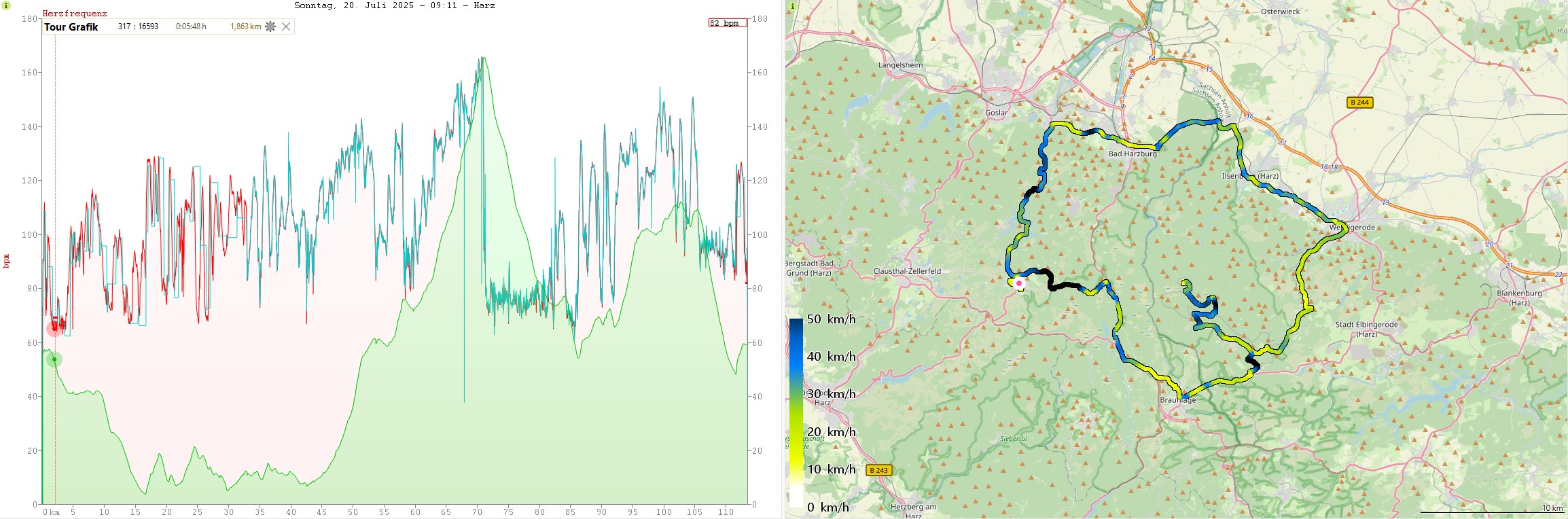 Da wir die Wohnung bis Montag hatten, konnten wir ganz entspannt den Tag angehen und auch noch eine ordentliche Tour machen. Für heute stand die obligatorische Befahrung des Brockens auf dem Programm. Allerdings hatte ich die Strecke so geplant, dass es erst mal locker los ging und wir hinab nach Oker fahren würden, um dann über Wernigerode den langen Anstieg hinauf zum Brocken zu machen.